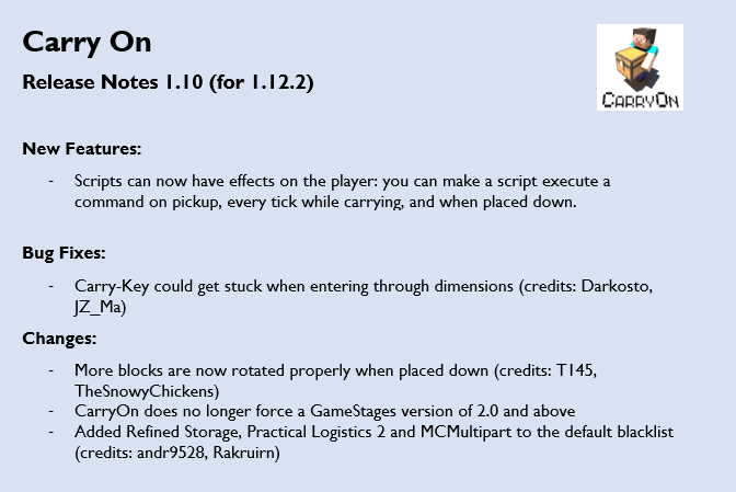 Carry On Mod Minecraft 1.12.2 / Carry on is quite a useful mod that adds a bit of extra functionality to the item carrying aspect of .
